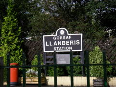 ホームにはこんな駅名とこれから目指すスノードン山が見えてきました