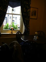 案内してくれた私の席は暖炉前で、前方の窓からはハイ・ストリートが見えます