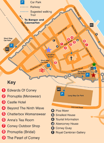 コンウェイの町の地図 ★ツーリストインフォメーション ★コンウェイ城